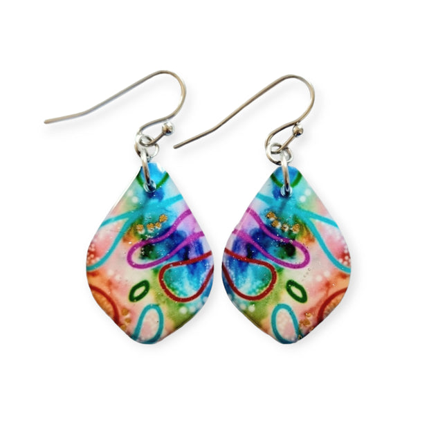 Show off your appreciation for peace with these white dove Earrings. Crafted in rich purple & teal accents with shimmering resin for an extra sparkle, these elegant earrings show that you stand for a peaceful world.